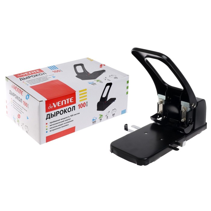 Дырокол металлический 100 листов, deVENTE, мощный, с линейкой, чёрный — Характеристики