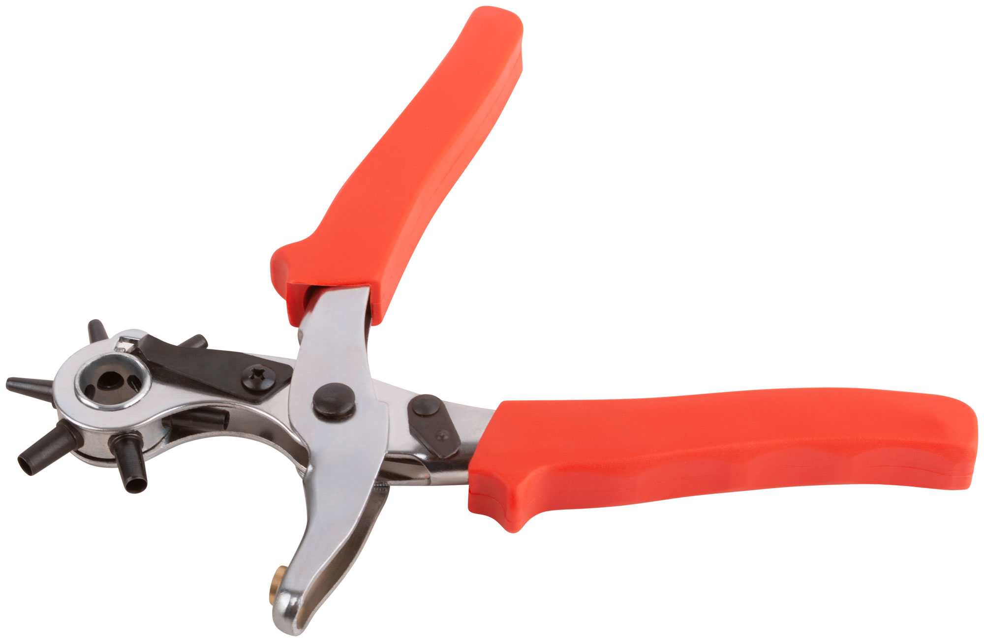 Основное преимущество этого дырокола — револьверная головка, позволяющая выбирать из шести разных диаметров отверстий (2, 2.5, 3, 3.5, 4, 4.5 мм), что делает его универсальным для разных задач и материалов.