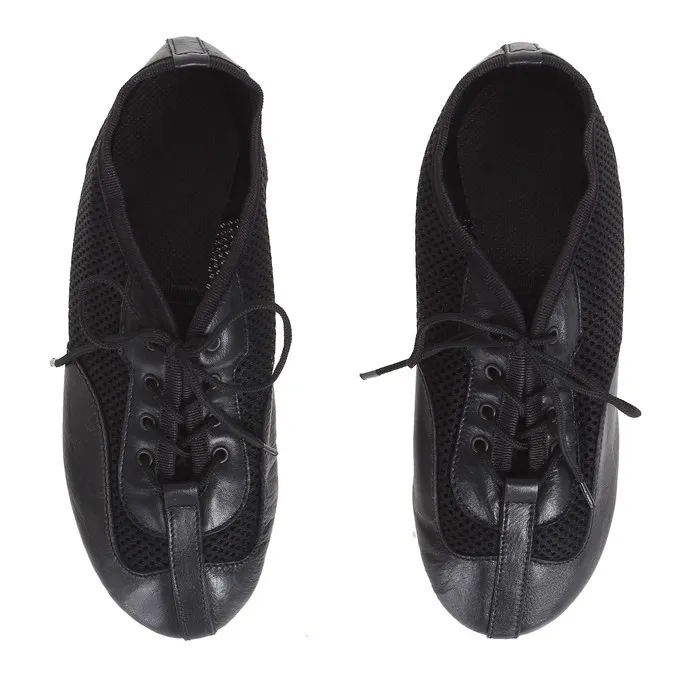 Мягкие джазовки подходят для занятий современными танцами. Разделённая на две части подошва придаёт стопе необходимую гибкость и устойчивость на паркете. Натуральный материал и сетчатые вставки сделают тренировочный процесс комфортнее.