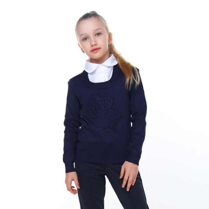 Джемпер-обманка для девочки, цвет синий, рост 134-140см