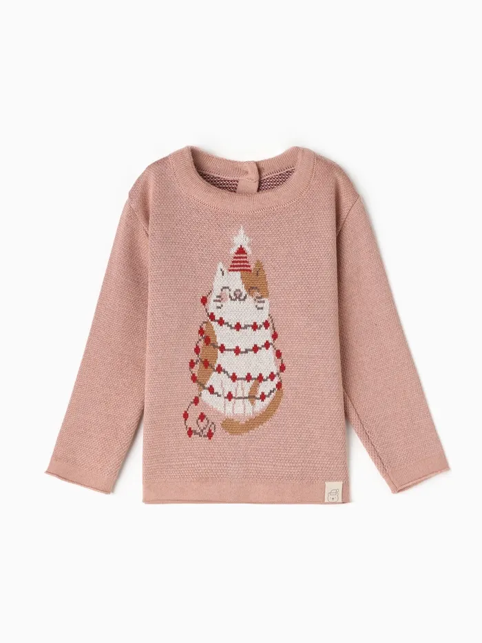 Джемпер вязаный Крошка Я "Зимний котик" рост 92-98 см, цвет розовый — Характеристики