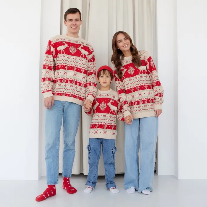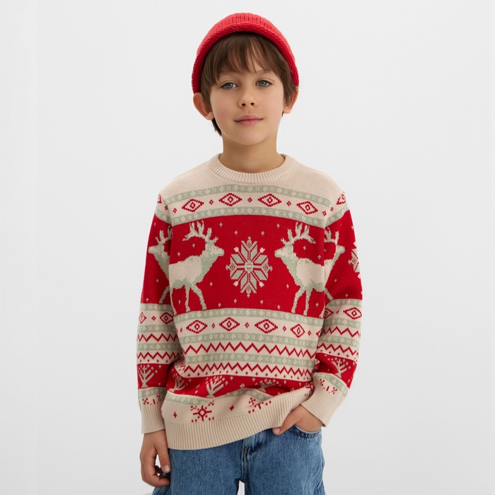 Джемпер вязаный новогодний детский KAFTAN Scandinavia размер 32 (110-116 см), цвет красный — Характеристики