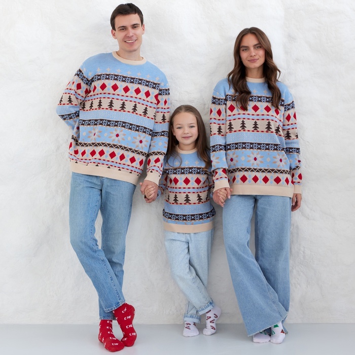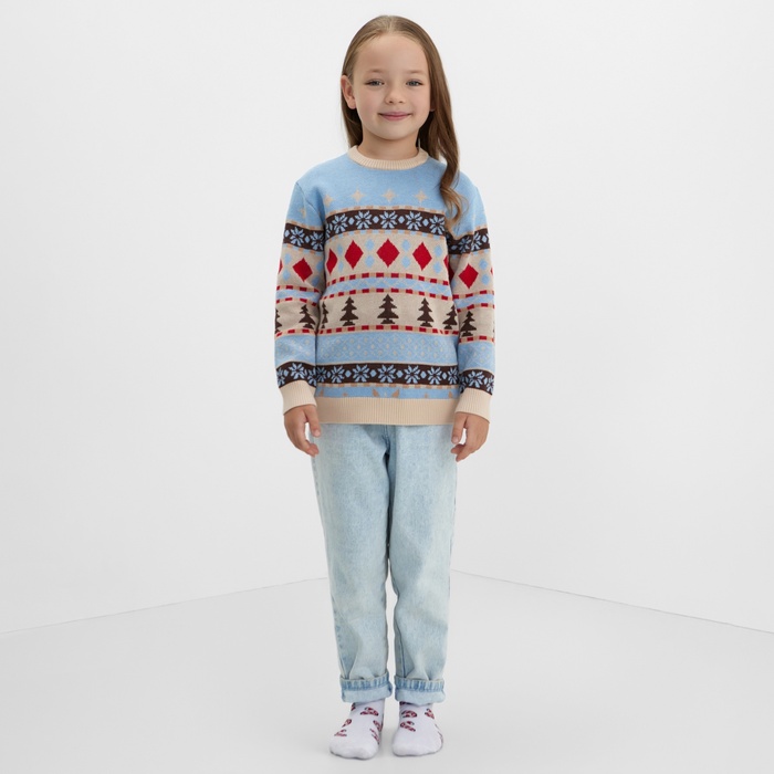 Джемпер вязаный новогодний детский KAFTAN Scandinavia размер 34 (122-128 см), цвет голубой — Характеристики