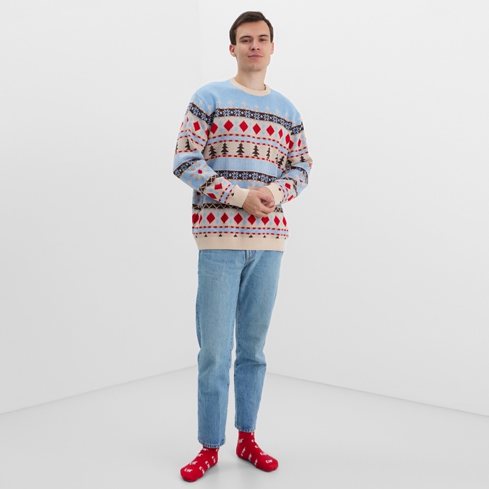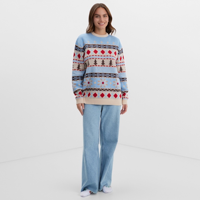 Джемпер вязаный новогодний KAFTAN Scandinavia размер 46, цвет голубой — Характеристики