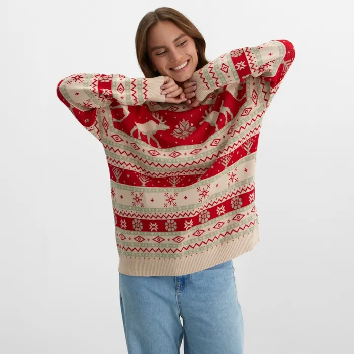 Джемпер вязаный новогодний KAFTAN Scandinavia размер 48, цвет красный — Характеристики