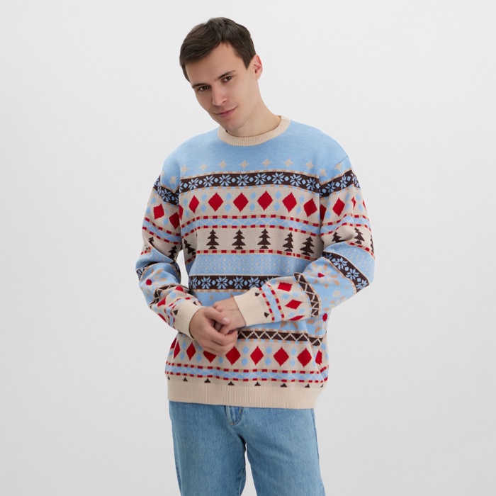 Джемпер вязаный новогодний KAFTAN Scandinavia размер 50, цвет голубой — Характеристики