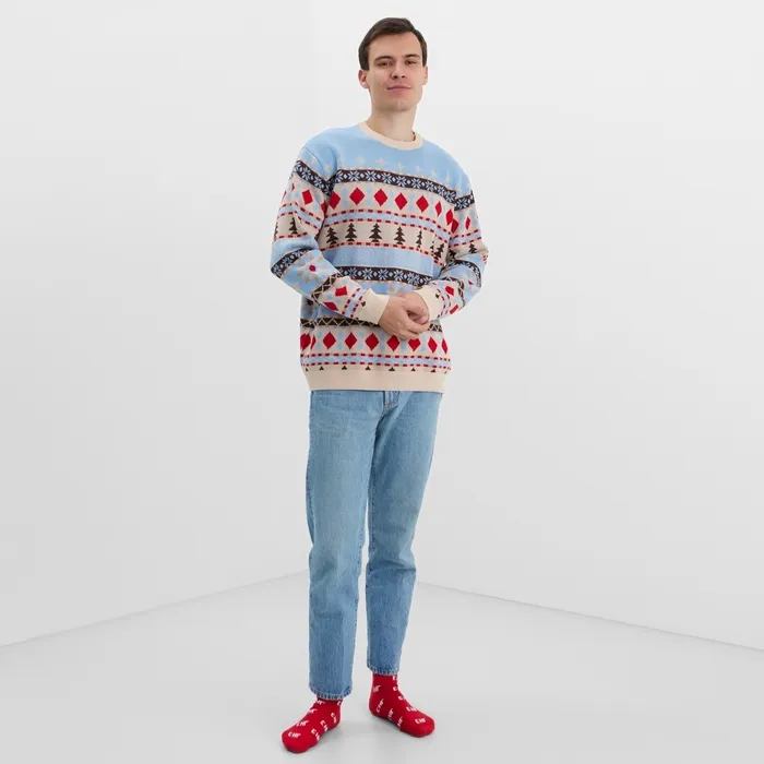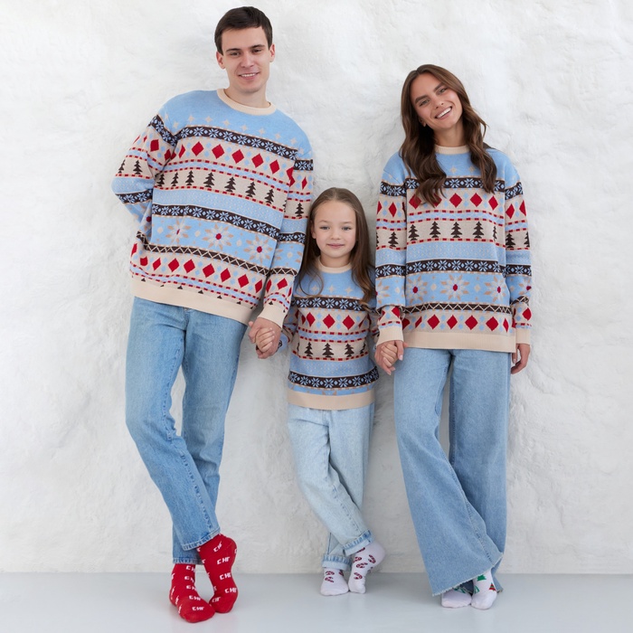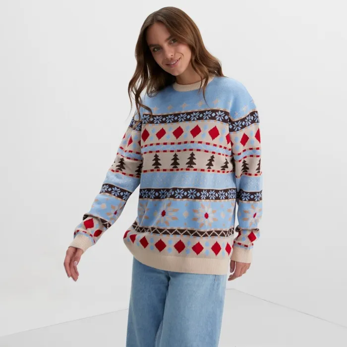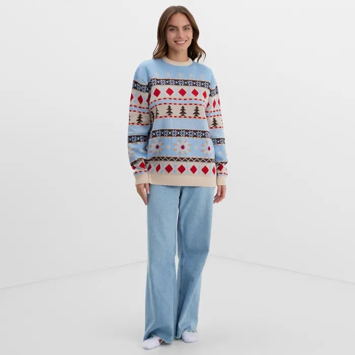 Джемпер вязаный новогодний KAFTAN Scandinavia размер 50, цвет голубой — Характеристики
