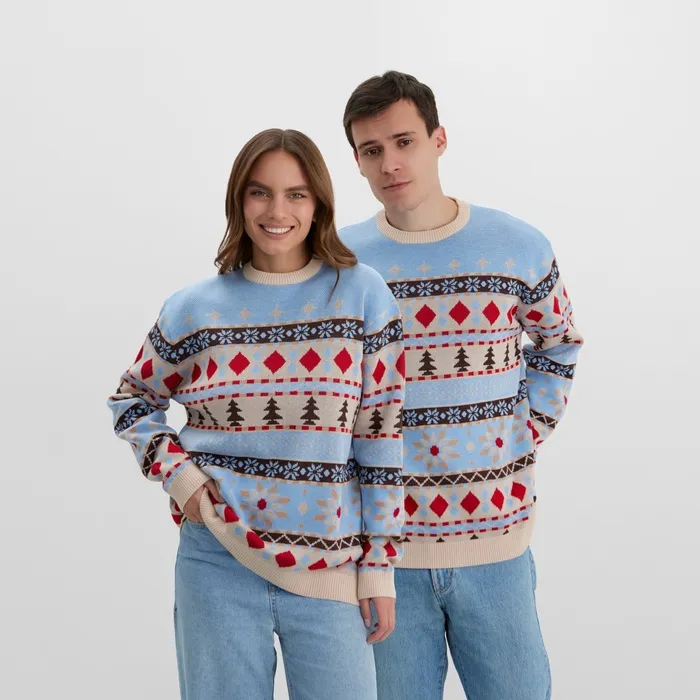 Джемпер вязаный новогодний KAFTAN Scandinavia размер 52, цвет голубой — Характеристики