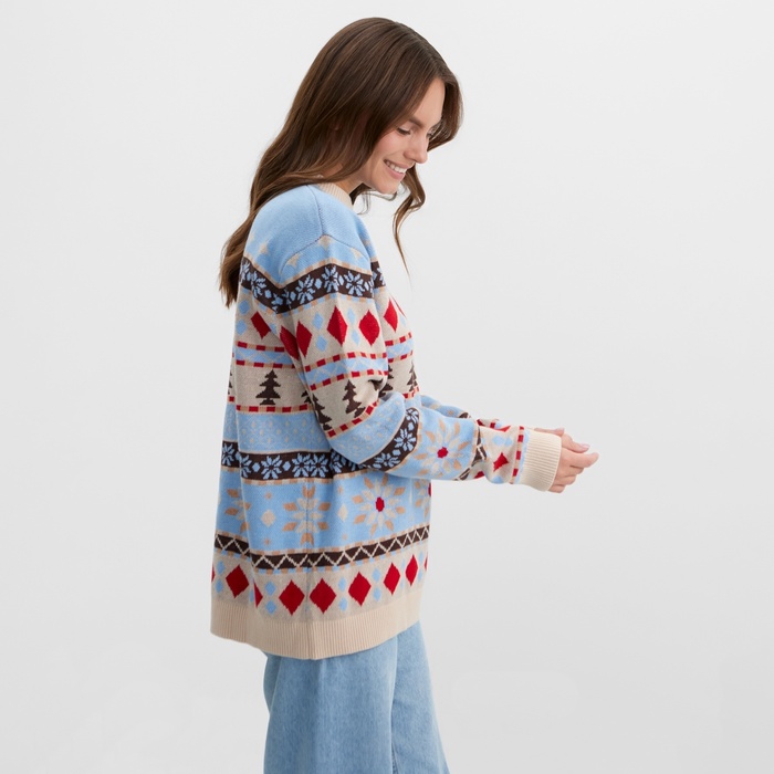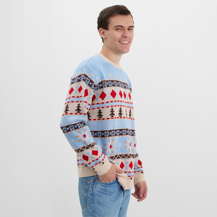 Джемпер вязаный новогодний KAFTAN Scandinavia размер 52, цвет голубой — Характеристики