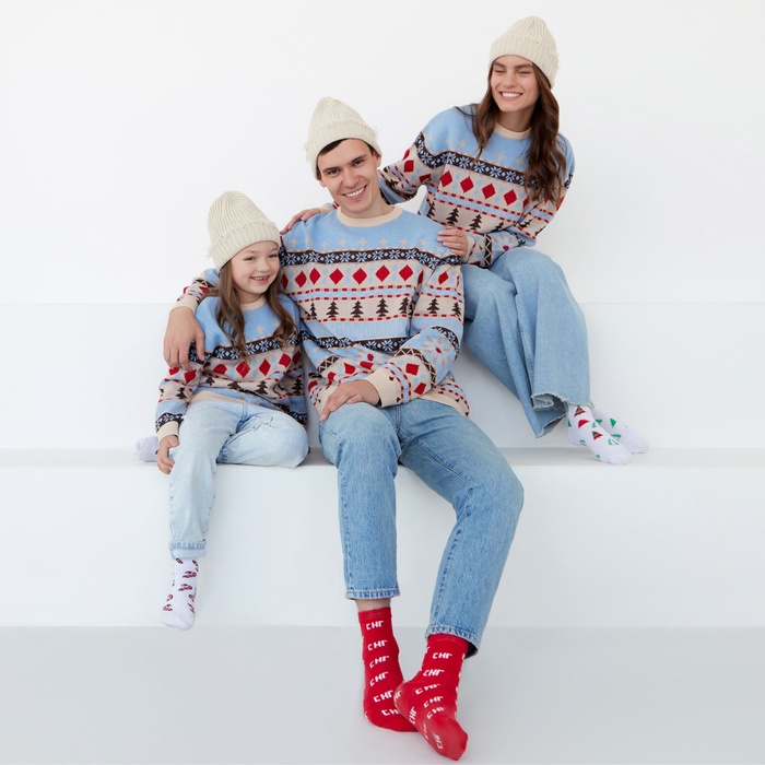 Джемпер вязаный новогодний KAFTAN Scandinavia размер 54, цвет голубой — Характеристики