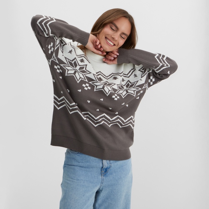 Джемпер вязаный новогодний KAFTAN Scandinavia размер 56, цвет серый — Характеристики