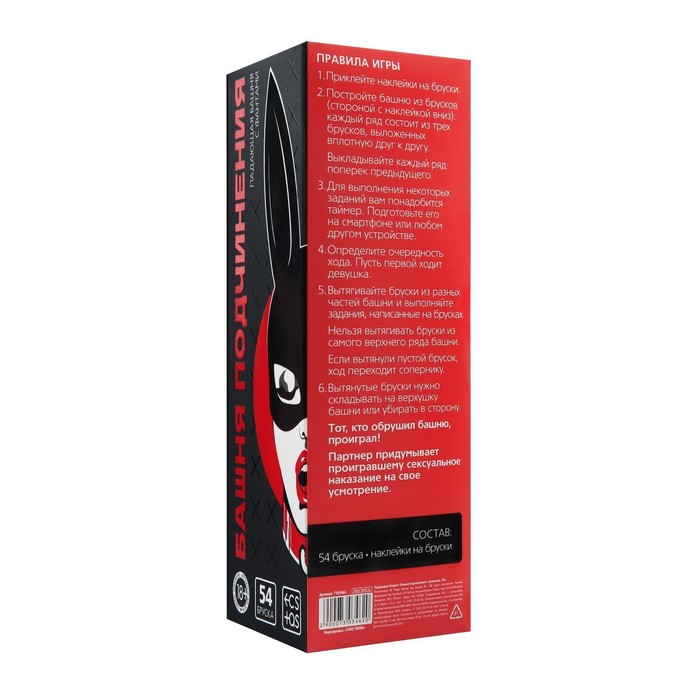 Дженга падающая башня «Башня подчинения» для двоих с фантами, 54 бруска, 18+ — Характеристики