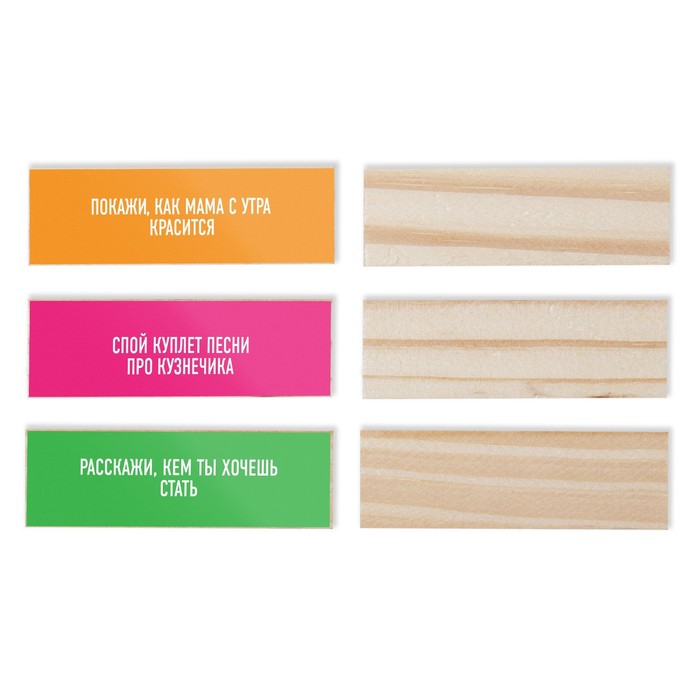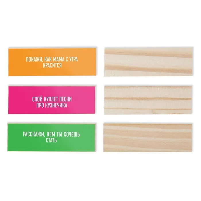 Приклейте наклейки с заданиями на бруски.
