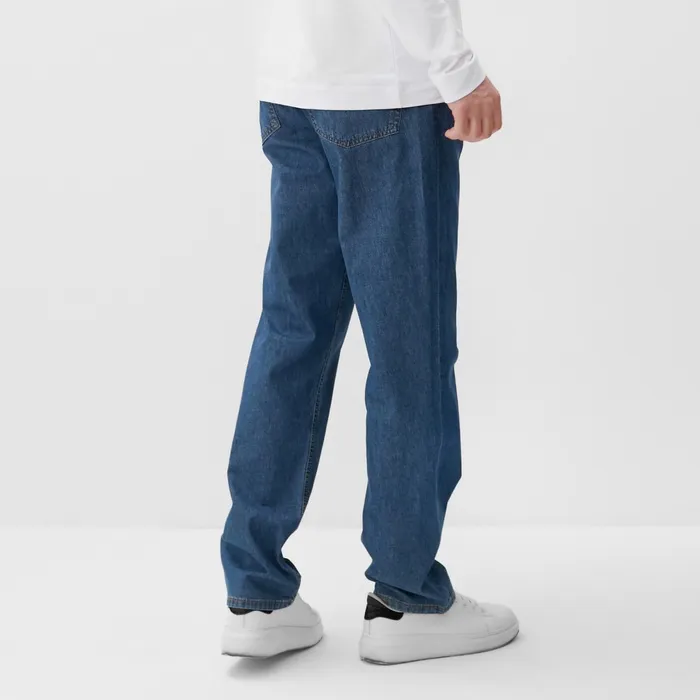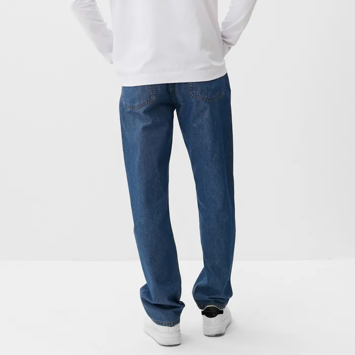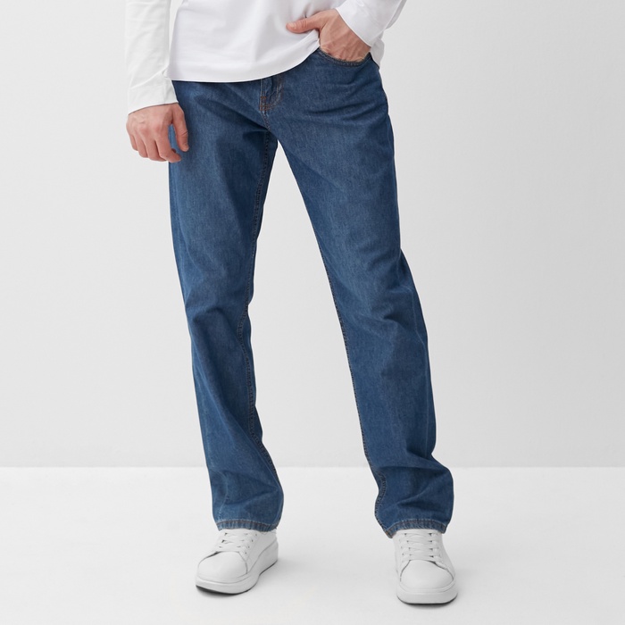 Мужские джинсы средней посадки темно-синего цвета отлично подходят для ежедневного стилизованного образа. Они выполнены из плотной джинсовой ткани из натурального хлопка, что обеспечивает комфорт и долговечность. Модель с классическим прямым кроем и универсальным цветом гармонично сочетается с разнообразными верхами — от футболок до рубашек.
