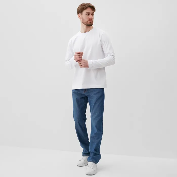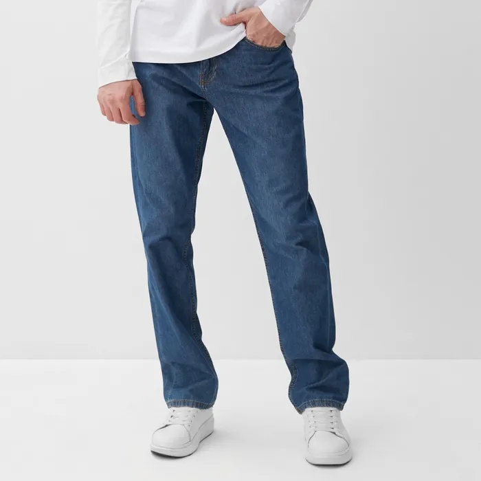Мужские джинсы с классическим прямым кроем и средней посадкой созданы для комфортной повседневной носки. Их тёмно-синий оттенок легко сочетается с разнообразной верхней одеждой, делая их универсальным элементом мужского гардероба. Изготовленные из натурального хлопка, эти джинсы обеспечивают хорошую вентиляцию и долговечность при интенсивном использовании. Подойдут для мужчин с ростом от 170 см, размеры 46-48 помогают обеспечить аккуратную посадку и свободу движений в течение всего дня.