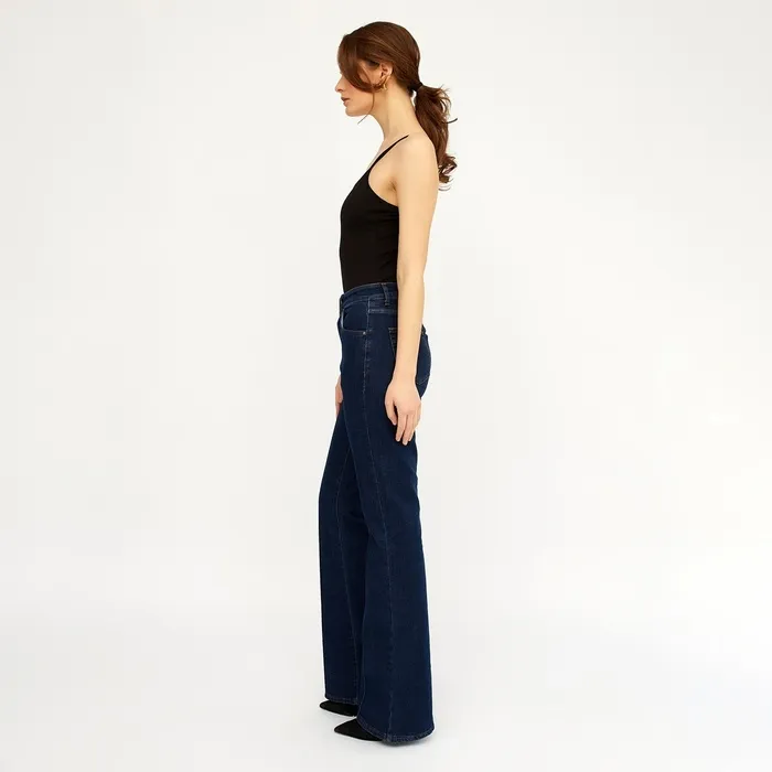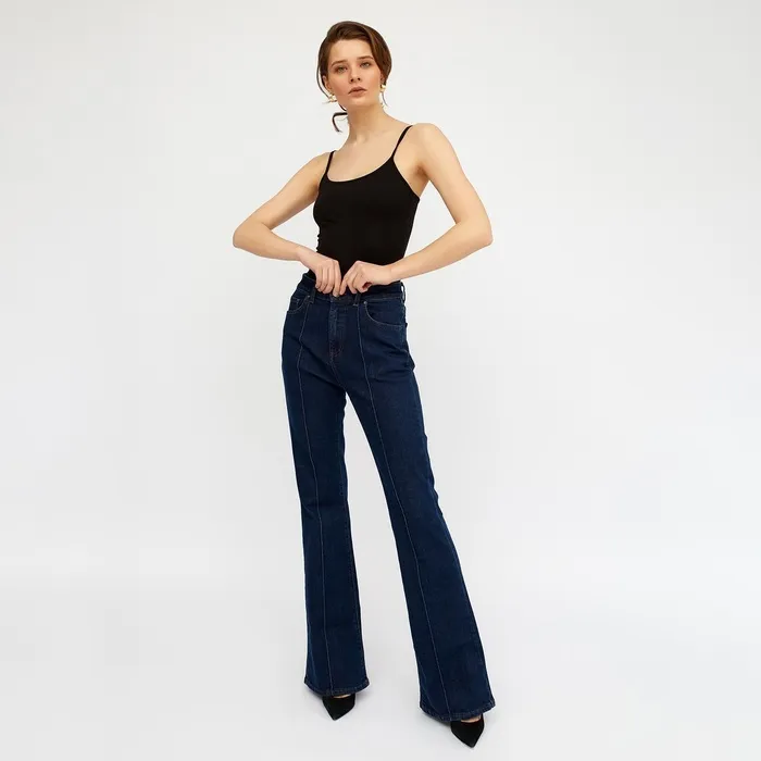 Джинсы женские клёш со стрелкой MINAKU: Jeans Collection, размер 42, тёмно-синие — Характеристики