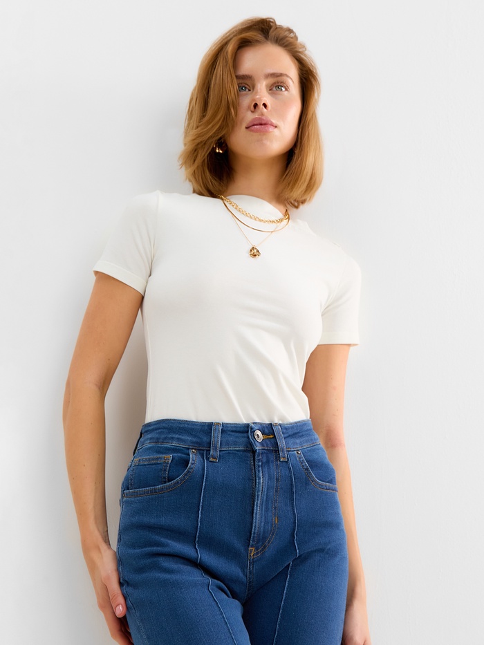 Джинсы женские клёш со стрелкой MINAKU: Jeans Collection, размер 44, синие — Характеристики