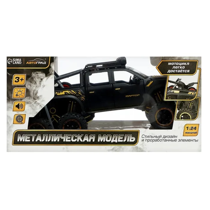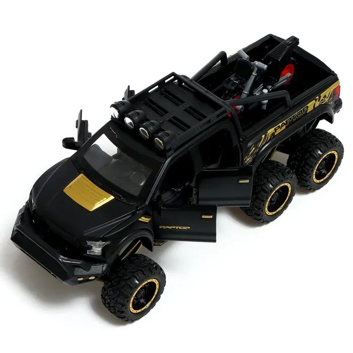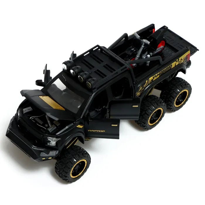 Джип металлический, 1:24, инерционный, открываются двери, капот, багажник, цвет чёрный — Характеристики