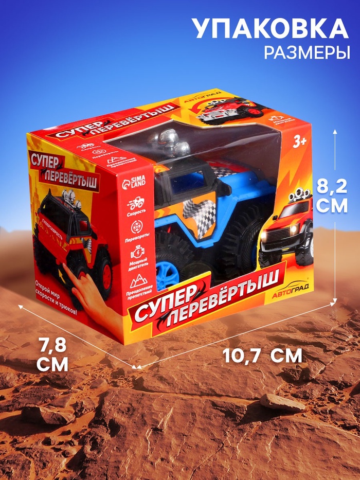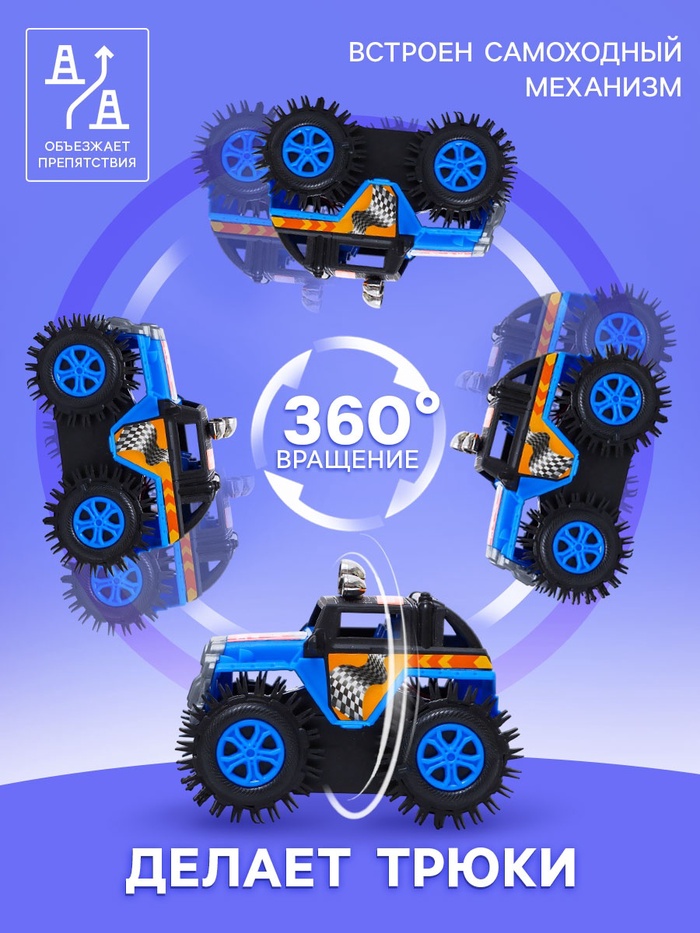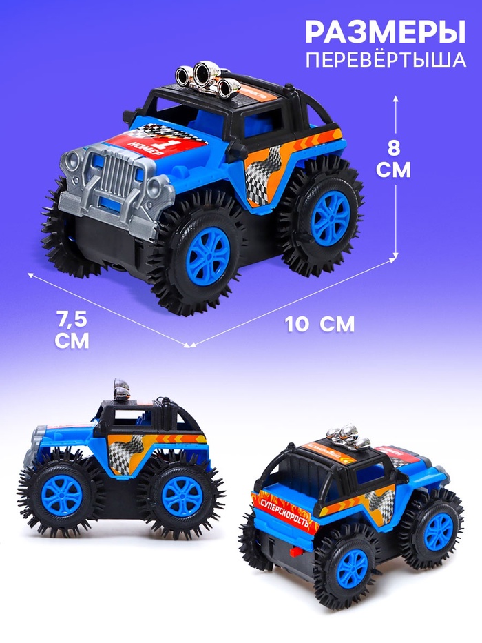 Джип-перевёртыш «Внедорожник», работает от батареек, цвет синий — Характеристики