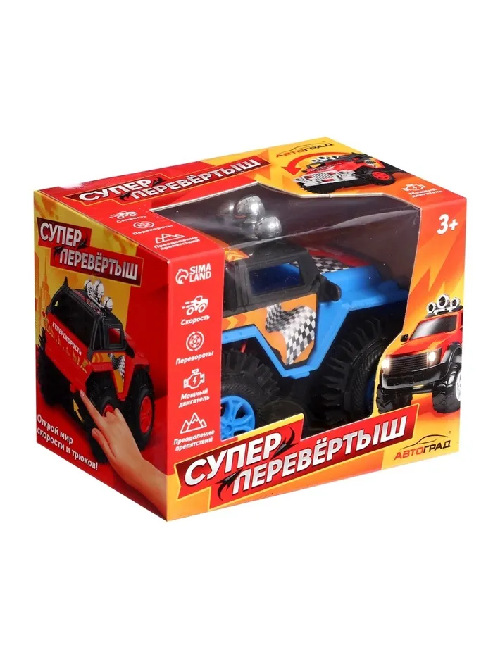 Машинка-перевертыш — это транспорт, спроектированный так, что он может продолжать движение даже после того, как перевернётся. Большие колёса помогают игрушке преодолевать небольшие препятствия. Если она упрётся в стену, то просто перевернётся и продолжит ехать дальше.