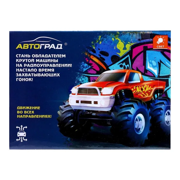 Радиоуправляемая машина-вездеход способна проехать там, где для легковых авто дороги нет! Большие колёса и высокая пружинная подвеска помогут преодолеть любые препятствия.