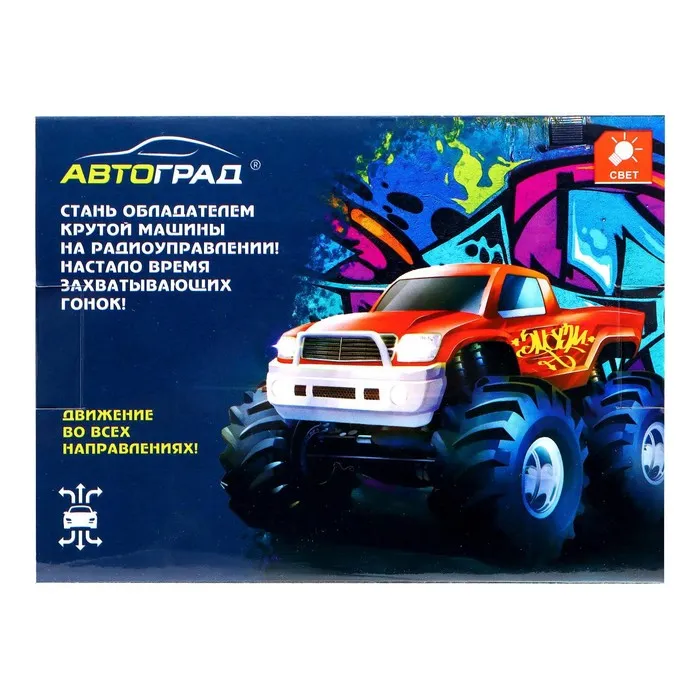 Радиоуправляемая машина-вездеход способна проехать там, где для легковых авто дороги нет! Большие колёса и высокая пружинная подвеска помогут преодолеть любые препятствия.