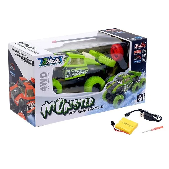 Джип радиоуправляемый «Монстр», 4WD, работает от аккумулятора, цвет зелёный — Характеристики