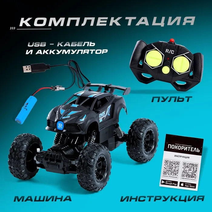 Джип радиоуправляемый «Покоритель», управление с телефона, работает от аккумулятора, цвет чёрный — Характеристики