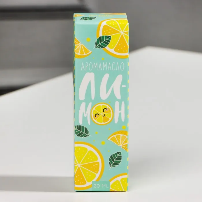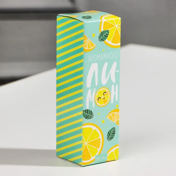 Бутылочка объемом 10 мл заключена в красивую картонную коробочку с изображением лимона.
