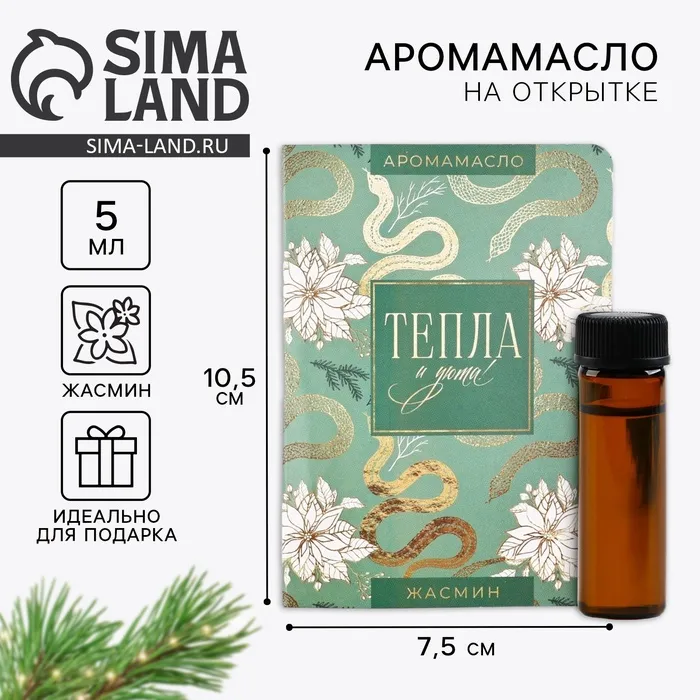Эфирное масло на открытке «Новый год: Тепла», аромат жасмин, 5 мл