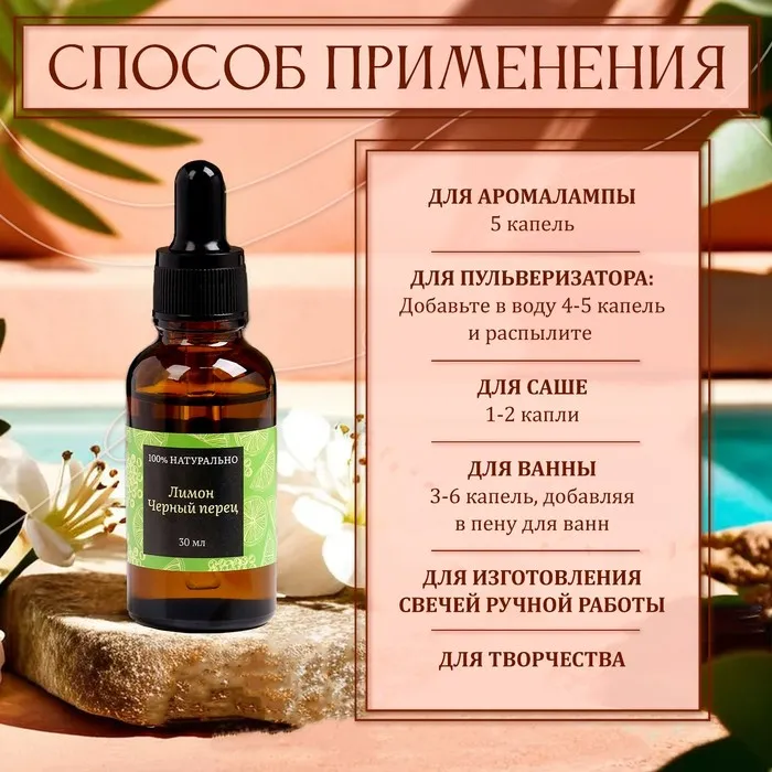 - Для ароматизации помещений: добавьте 3–5 капель в аромалампу или диффузор.