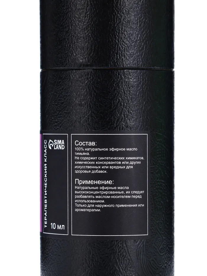 Масло "Тимьян" поставляется в элегантном тубусе, который подчеркивает его природное происхождение и утонченность. Такая упаковка не только удобна для хранения и использования, но и добавляет эстетическую ценность вашему интерьеру. Герметичная упаковка помогает сохранить все полезные свойства масла на протяжении долгого времени.