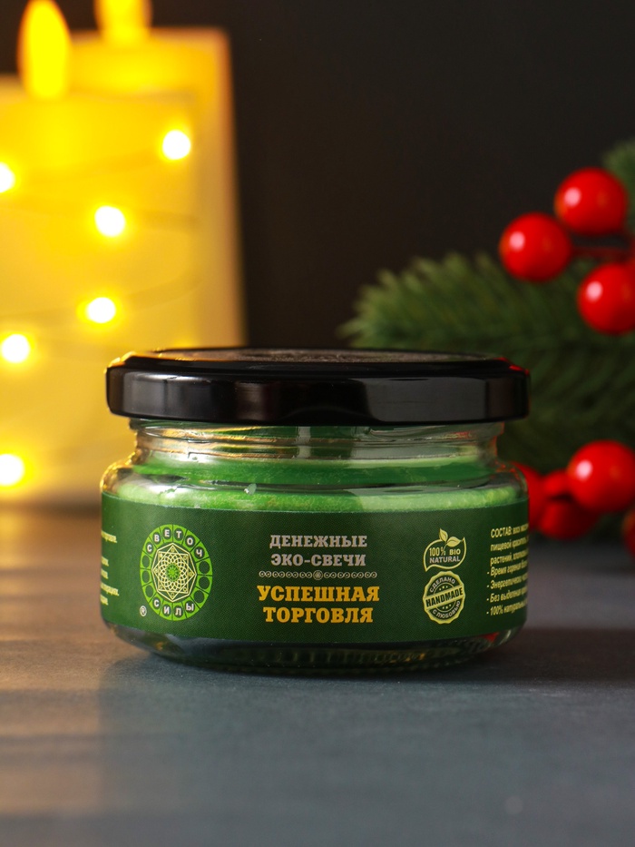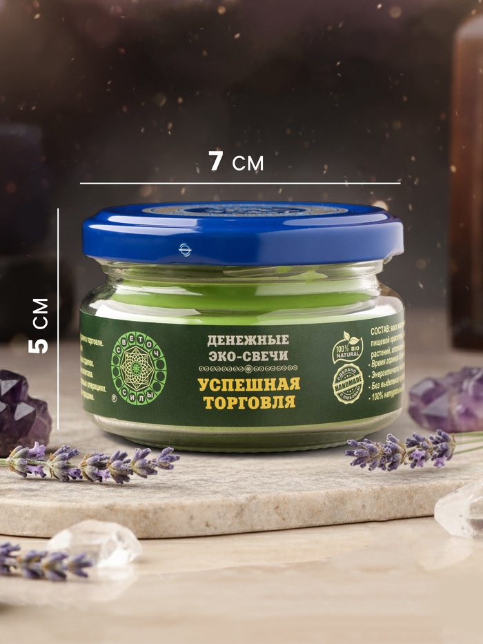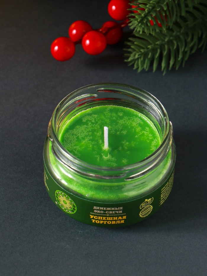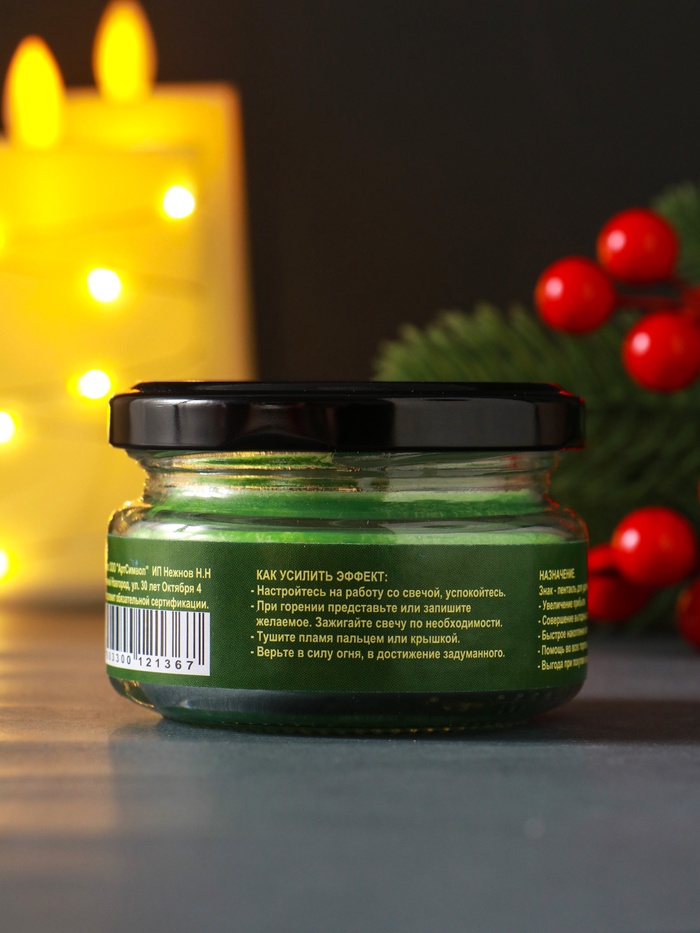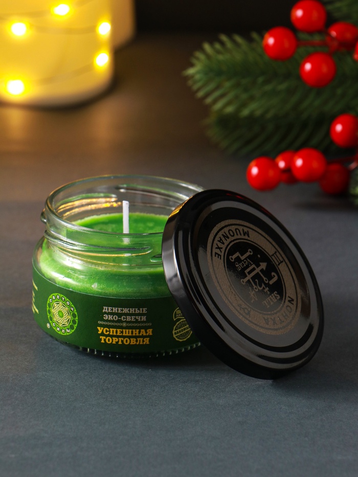 Эта зелёная обрядовая свеча в стеклянной банке — ваш личный талисман для привлечения удачи в торговле и бизнесе. Поставьте её на рабочее место или в зону богатства, чтобы создать сосредоточенную атмосферу для заключения выгодных сделок.