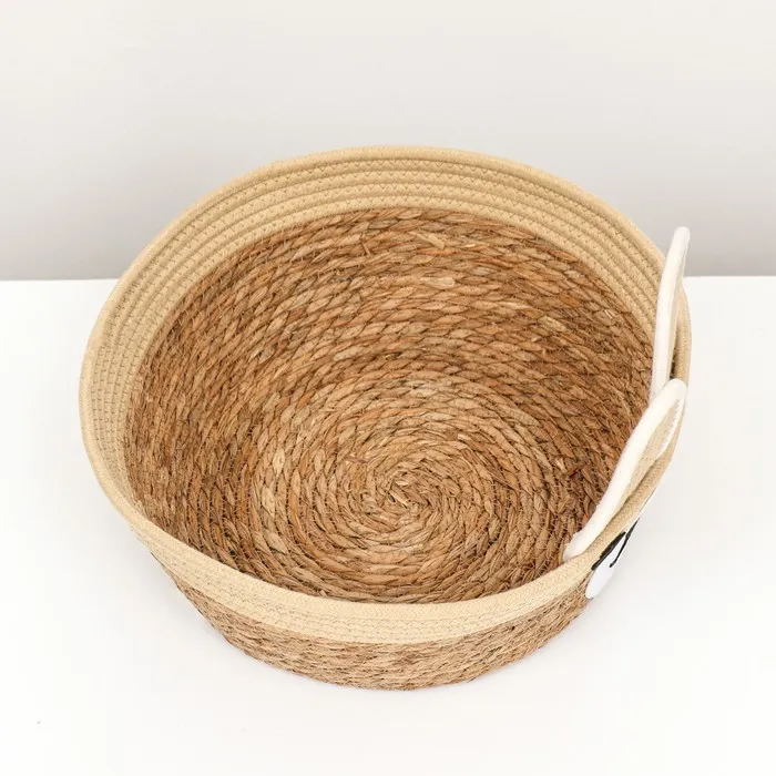Плетеная лежанка для домашних животных, изготовленная из прочного и натурального рогоза, обеспечит вашему питомцу комфортное место для отдыха.