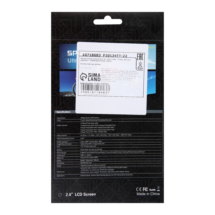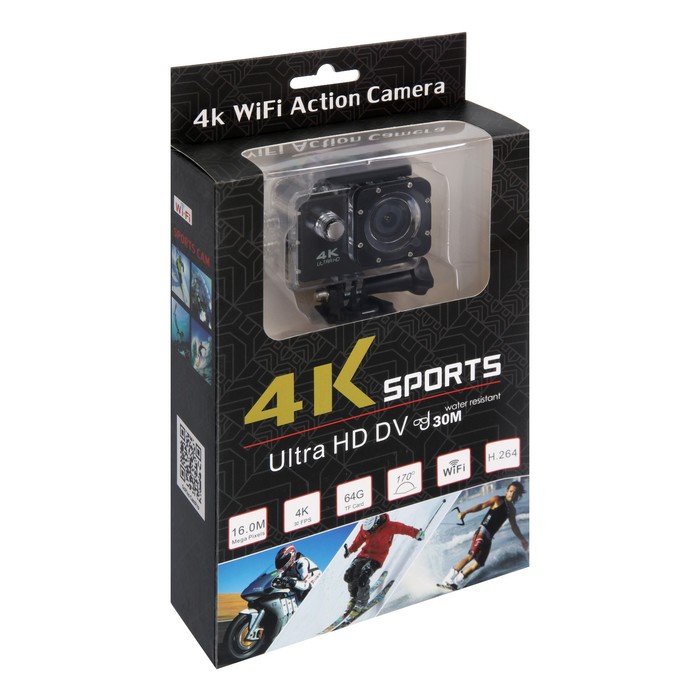 Экшн-камера Cam-16, 4K Ultra HD, 1920*1080 - 30 Fps, 900 мАч, аквабокс + набор креплений, чёрная — Характеристики