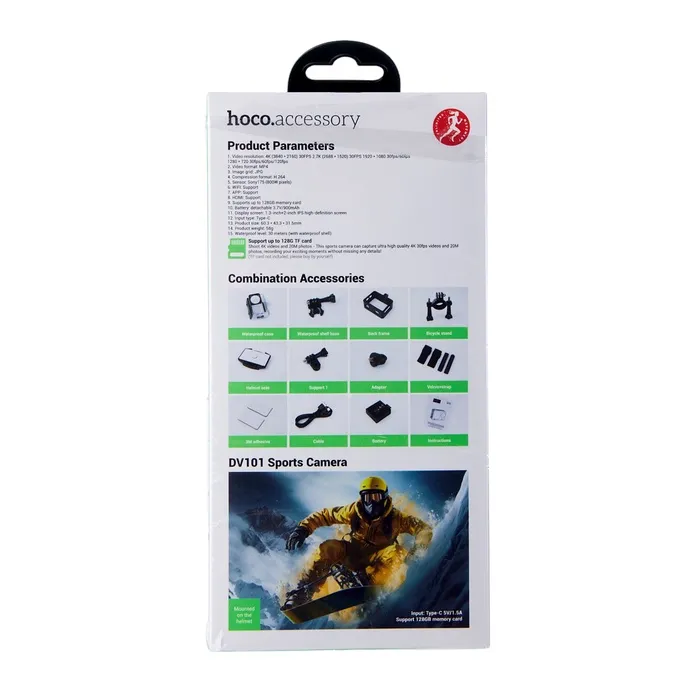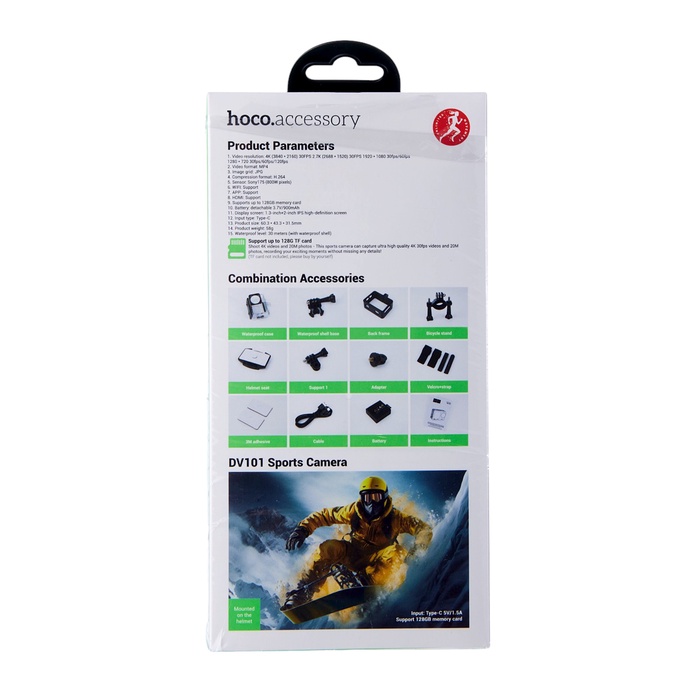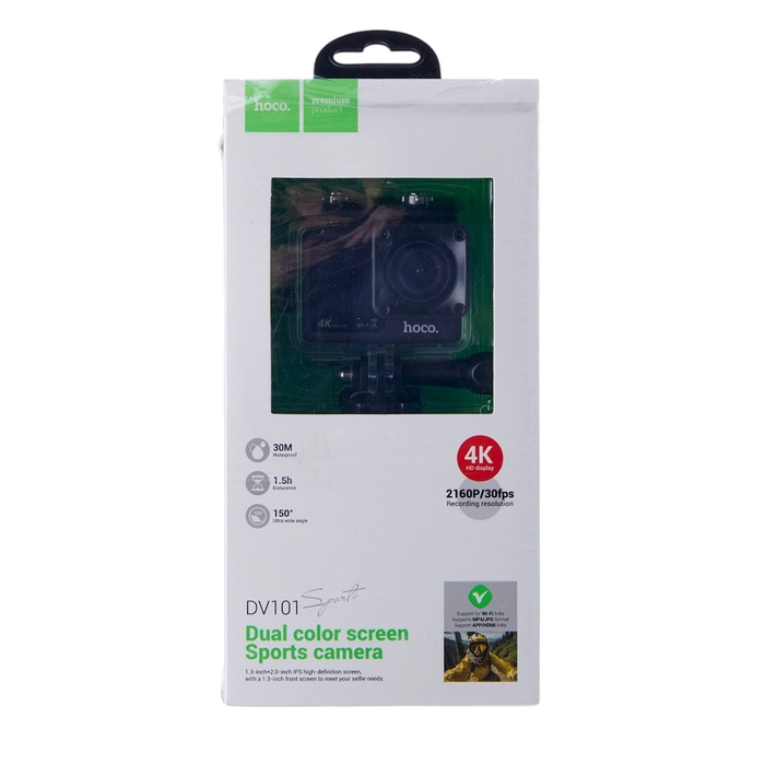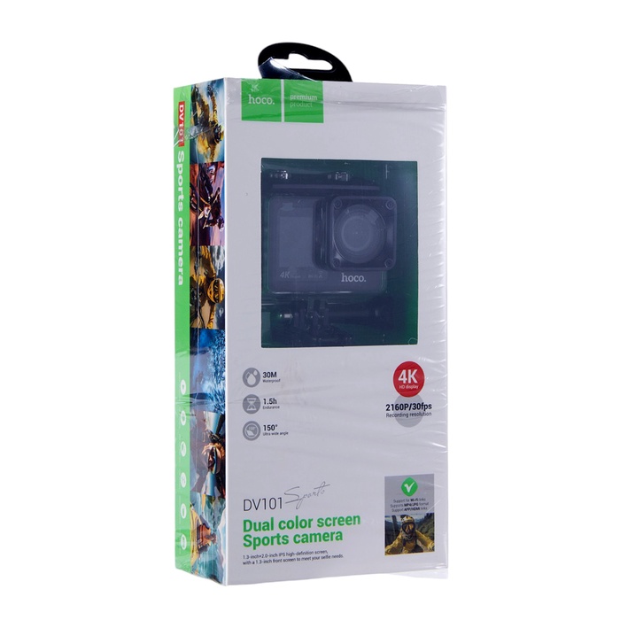 Экшн-камера Hoco, DV101, 4К видео, два цветных экрана, чёрная — Характеристики
