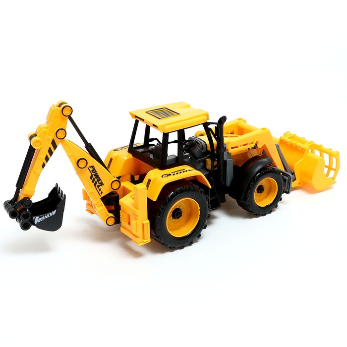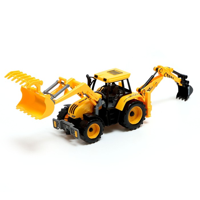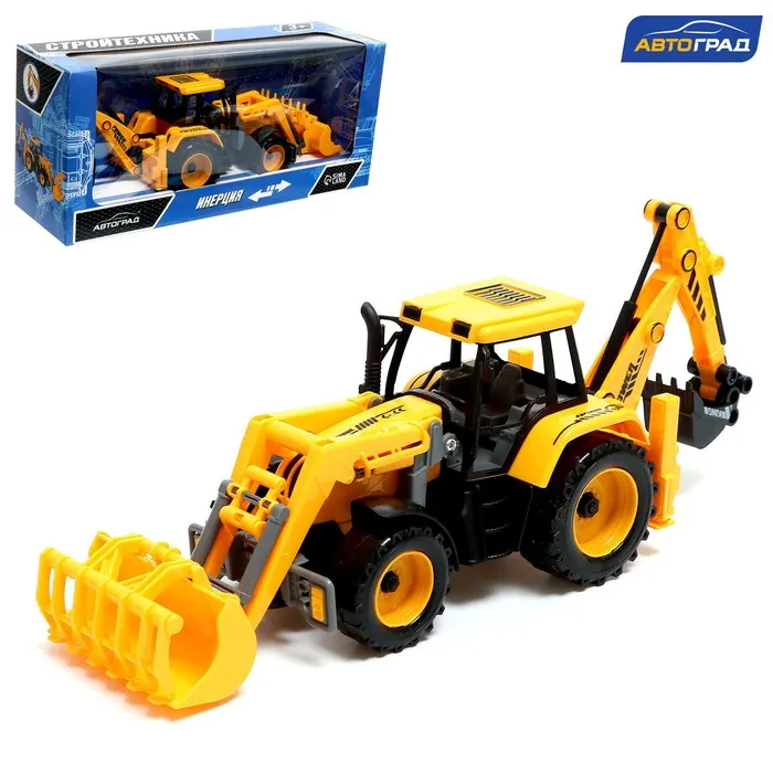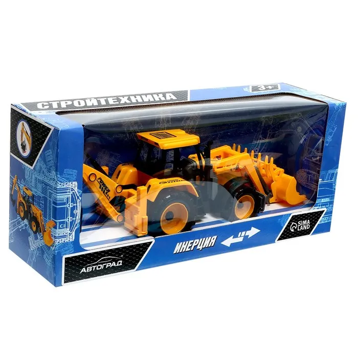 С инерционным экскаватором-погрузчиком «Стройтехника» ребёнок представит себя профессиональным водителем спецтранспорта. У техники подвижные ковш-вилы и простой ковш — с их помощью можно захватывать и перевозить небольшие предметы.