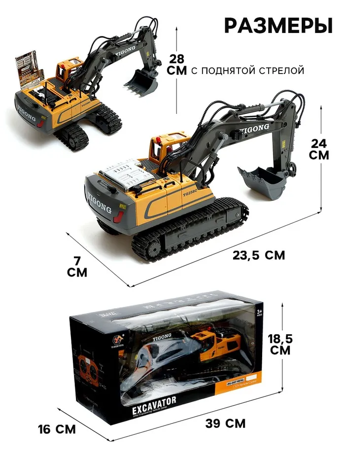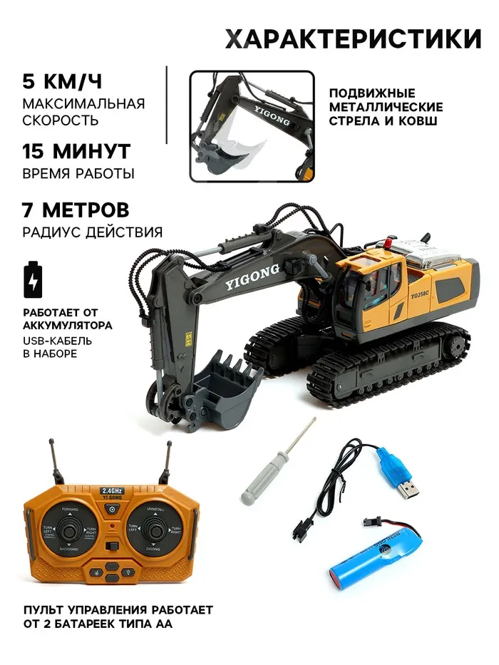 Экскаватор радиоуправляемый «Стройка», металлический ковш, работает от аккумулятора — Характеристики