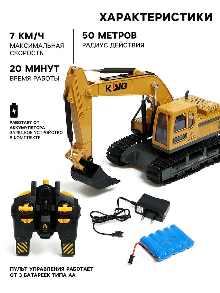 Экскаватор радиоуправляемый «Стройка», подвижный ковш, работает от аккумулятора — Характеристики
