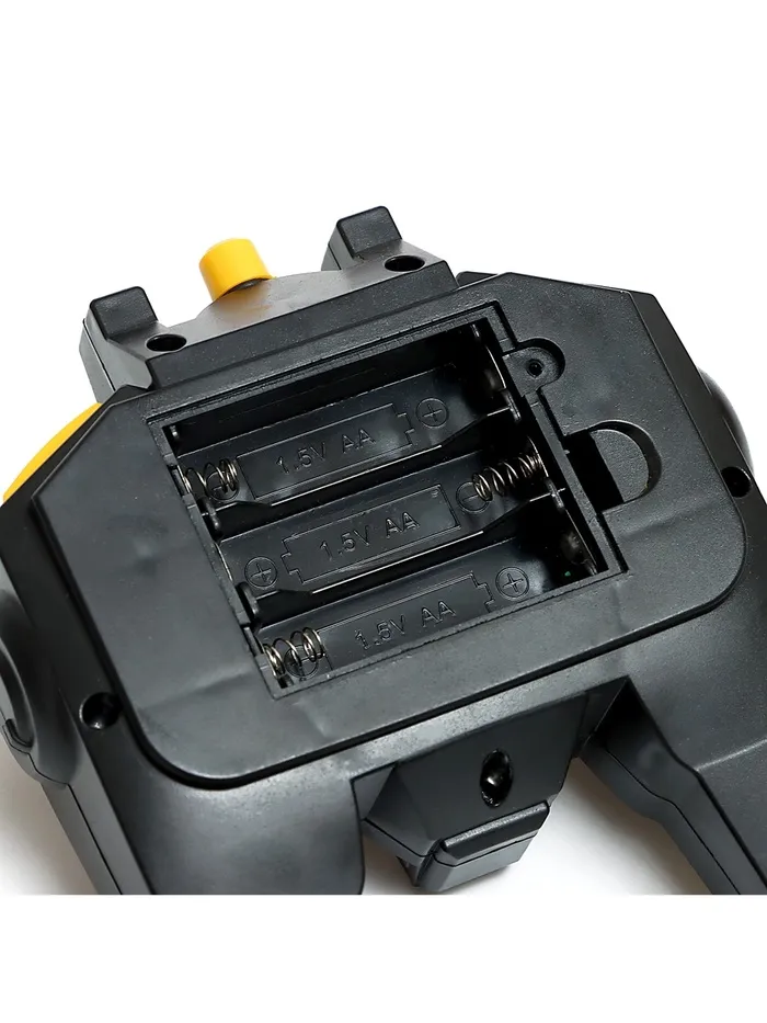 - Полный контроль: радиус действия пульта управления достигает 50 метров, что даёт ребёнку свободу действий. Экскаватор едет вперёд, назад и поворачивает в любую сторону — управление простое и интуитивное.