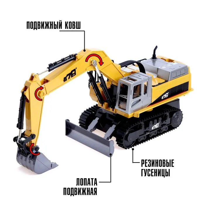 Экскаватор радиоуправляемый «Стройка», подвижный ковш, с элементами из металла — Характеристики