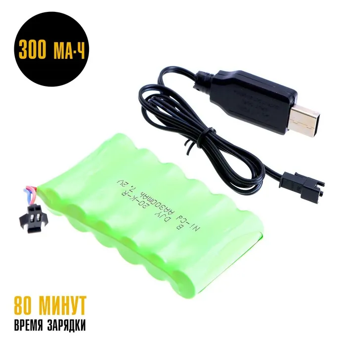 - Машина работает от аккумулятора 7,2 В 300 мА∙ч (в комплекте). Провод для зарядки в комплекте.