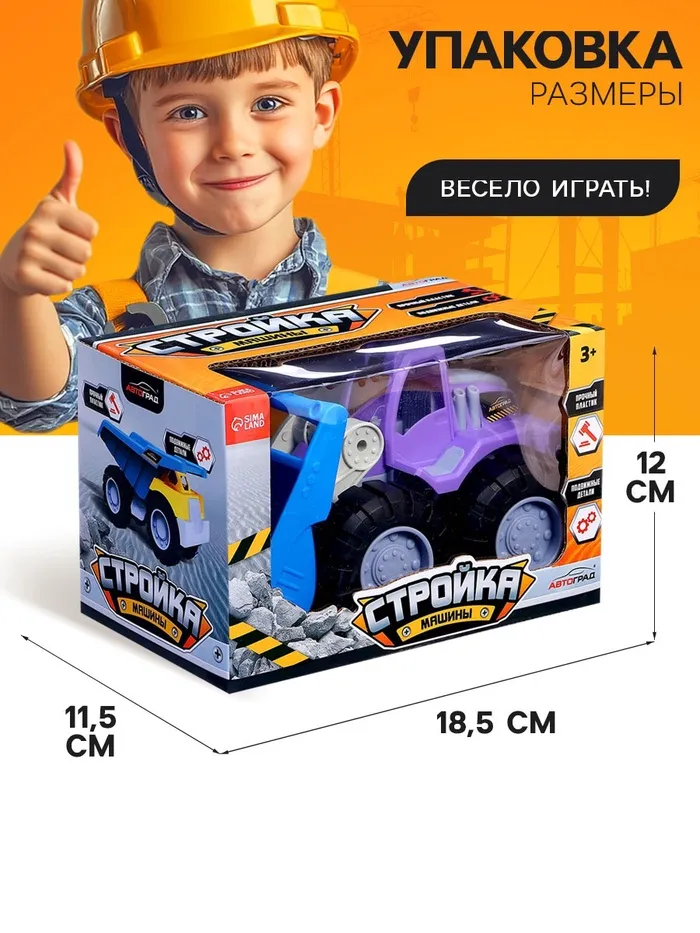 - Упаковка из картона с прозрачным PVC-окном делает экскаватор отличным подарком.