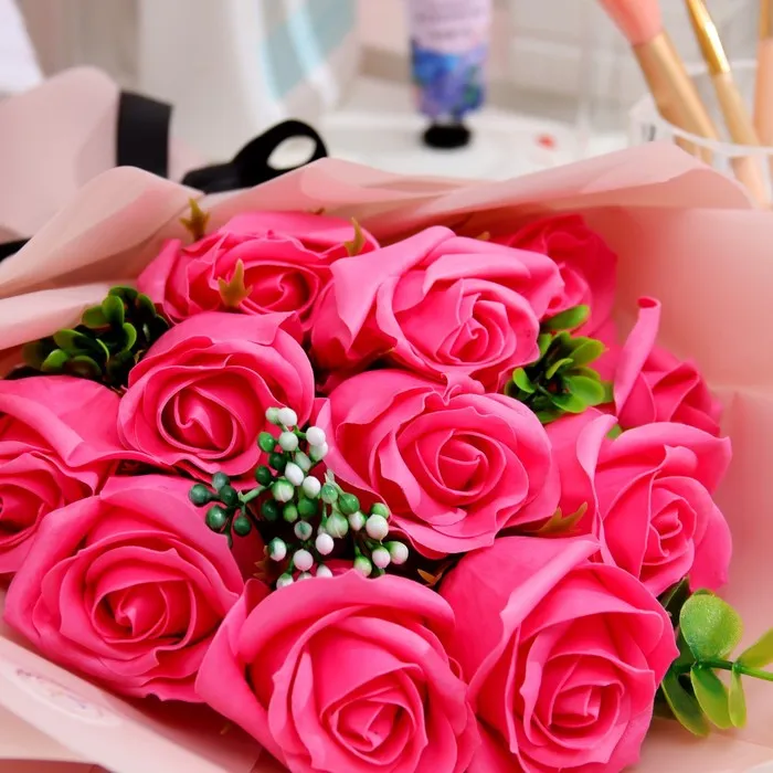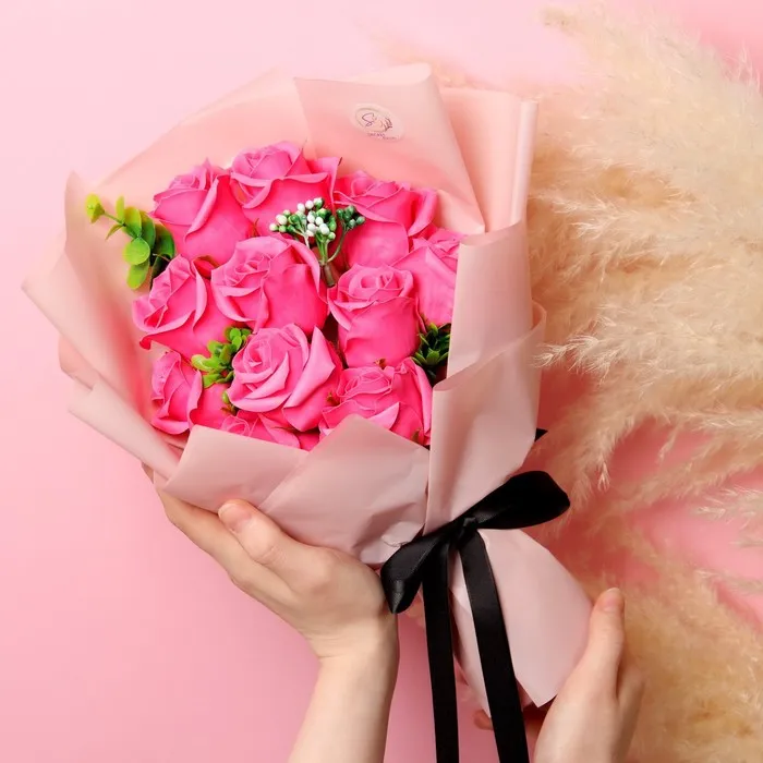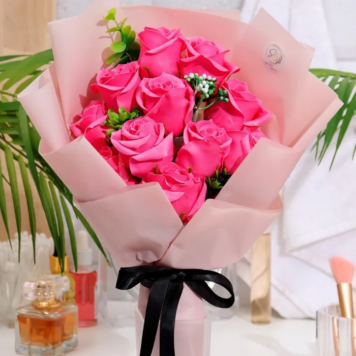 Эксклюзивный букет из мыльных роз, фуксия, 11 шт. — Характеристики