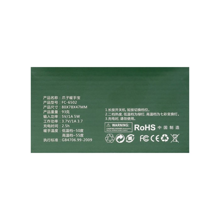 Электрическая портативная грелка для рук, 5 Вт, АКБ, 800 мАч, до 55 °С, USB, зеленая — Характеристики