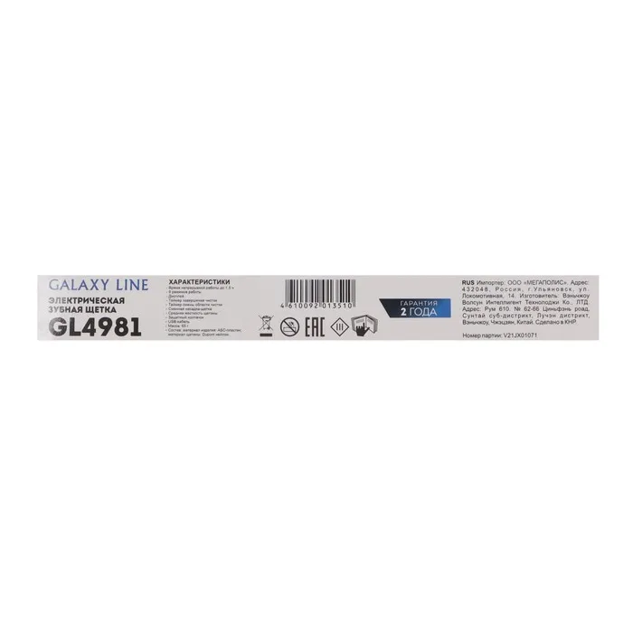 Электрическая зубная щётка Galaxy LINE GL4981, 1.5Вт, вибрацион., 9режимов, до 35000вибр/мин — Характеристики