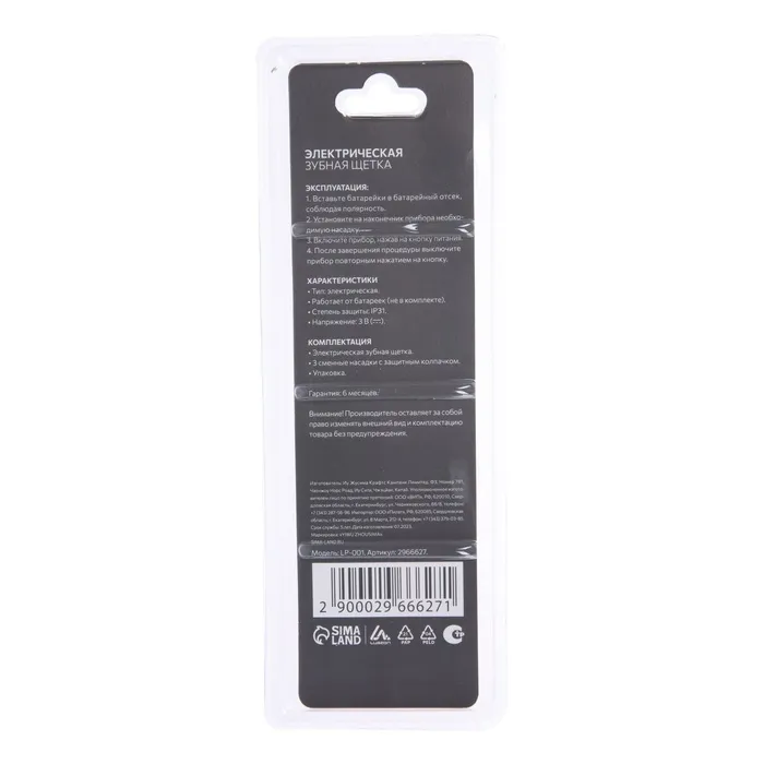 Электрическая зубная щётка Luazon LP-001, 3 насадки, от 2xАА (не в комплекте), МИКС — Характеристики