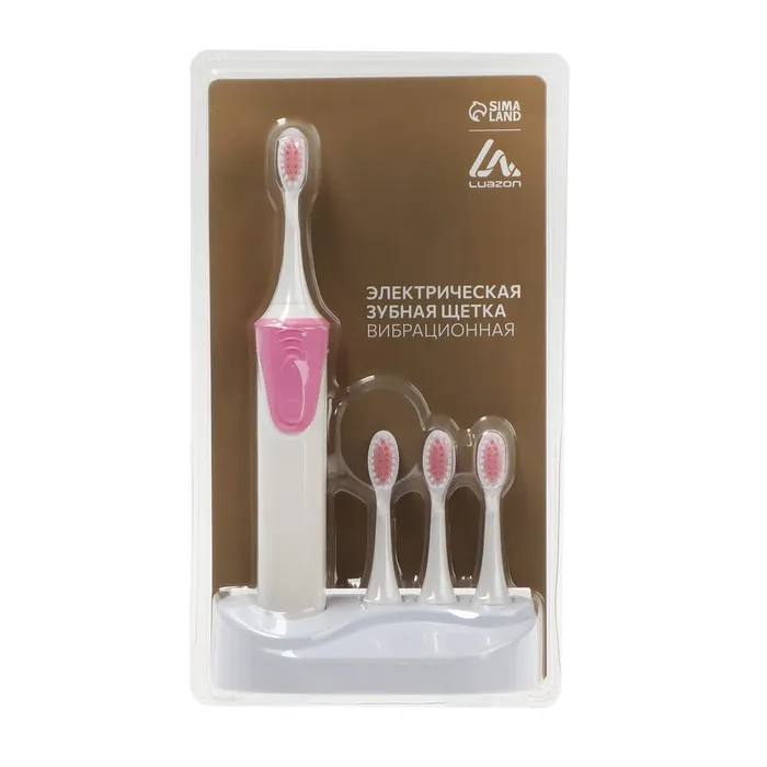 Электрическая зубная щётка Luazon LP-009, вибрационная, 8500 дв/мин, 4 насадки, 2×АА, розовая
