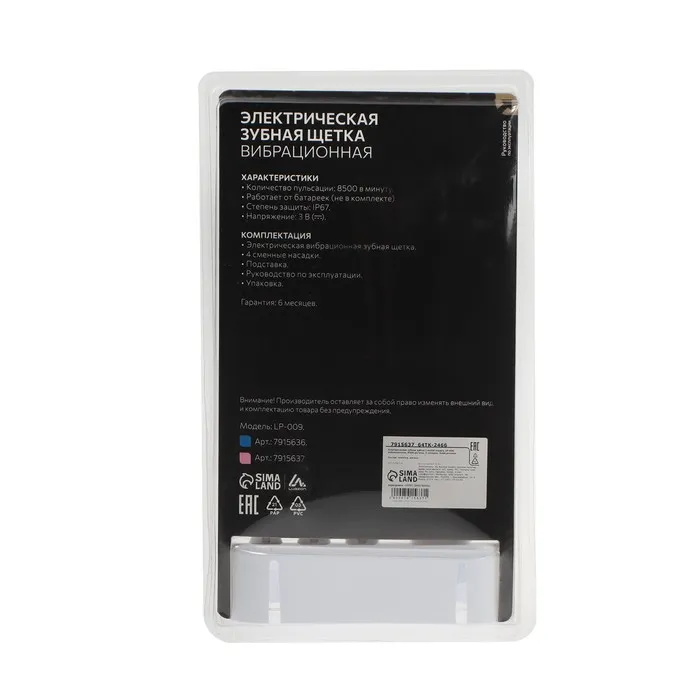 Электрическая зубная щётка Luazon LP-009, вибрационная, 8500 дв/мин, 4 насадки, 2×АА, розовая — Характеристики