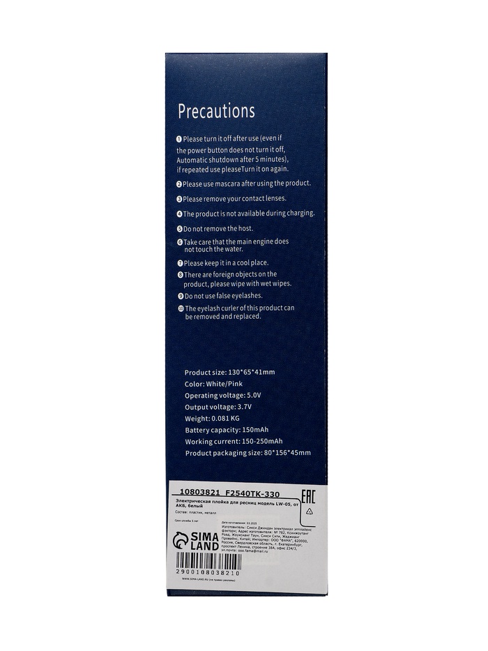 Электрический керлер для ресниц LW-05, с нагревом, от АКБ, белый — Характеристики